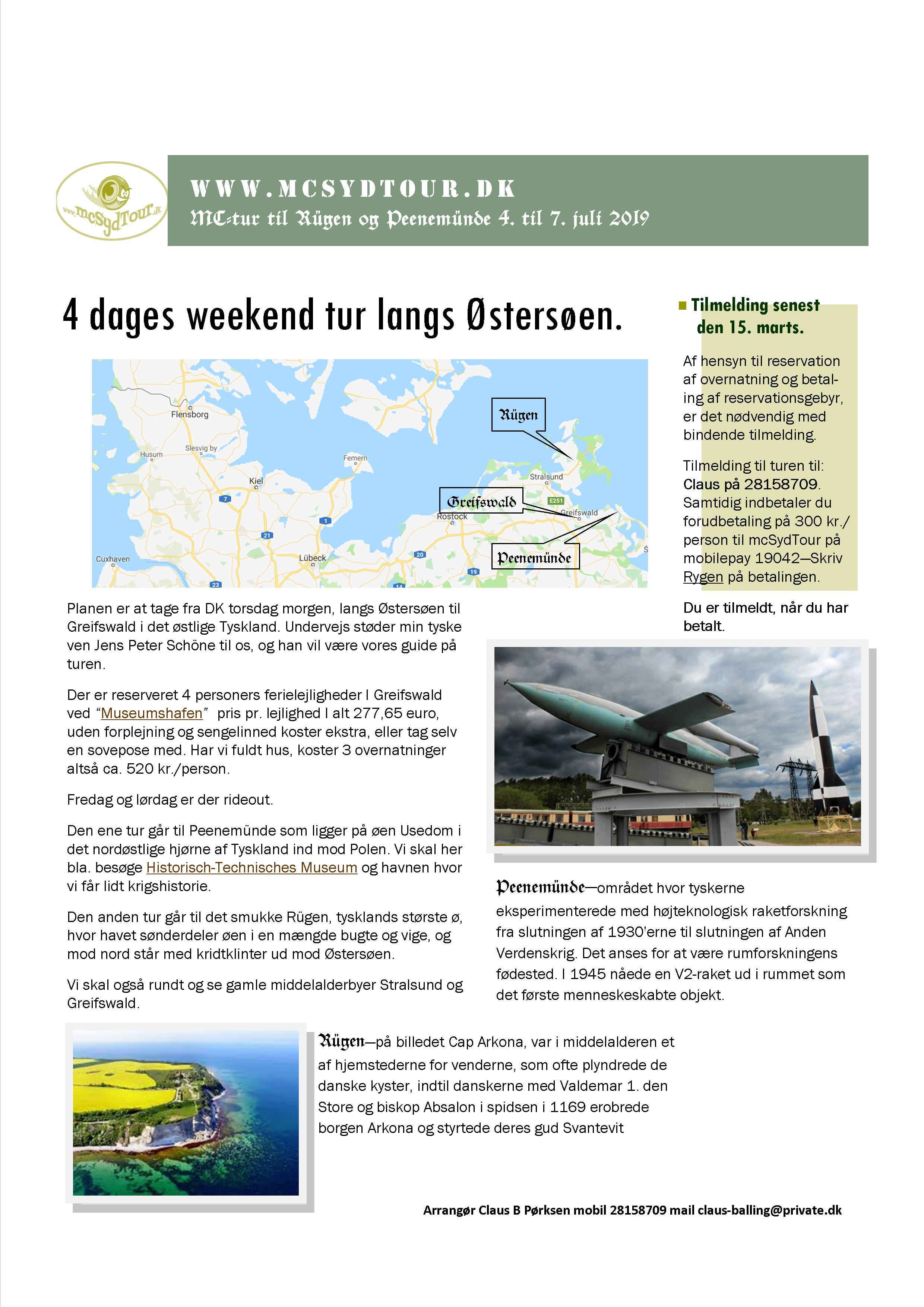 4 dages weekend tur langs Østersøen, hvor vi overnattede i ferielejligheder ved havnen i middelalderbyen Greifswald. Vores turguide Jens Peter Schöne viste os fredag rundt på øen Usedom til Peenemünde, og lørdag til Rügen, tysklands største ø.