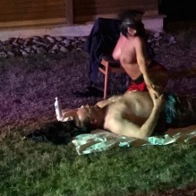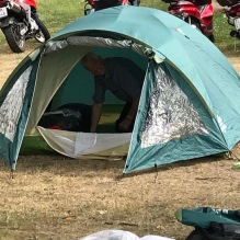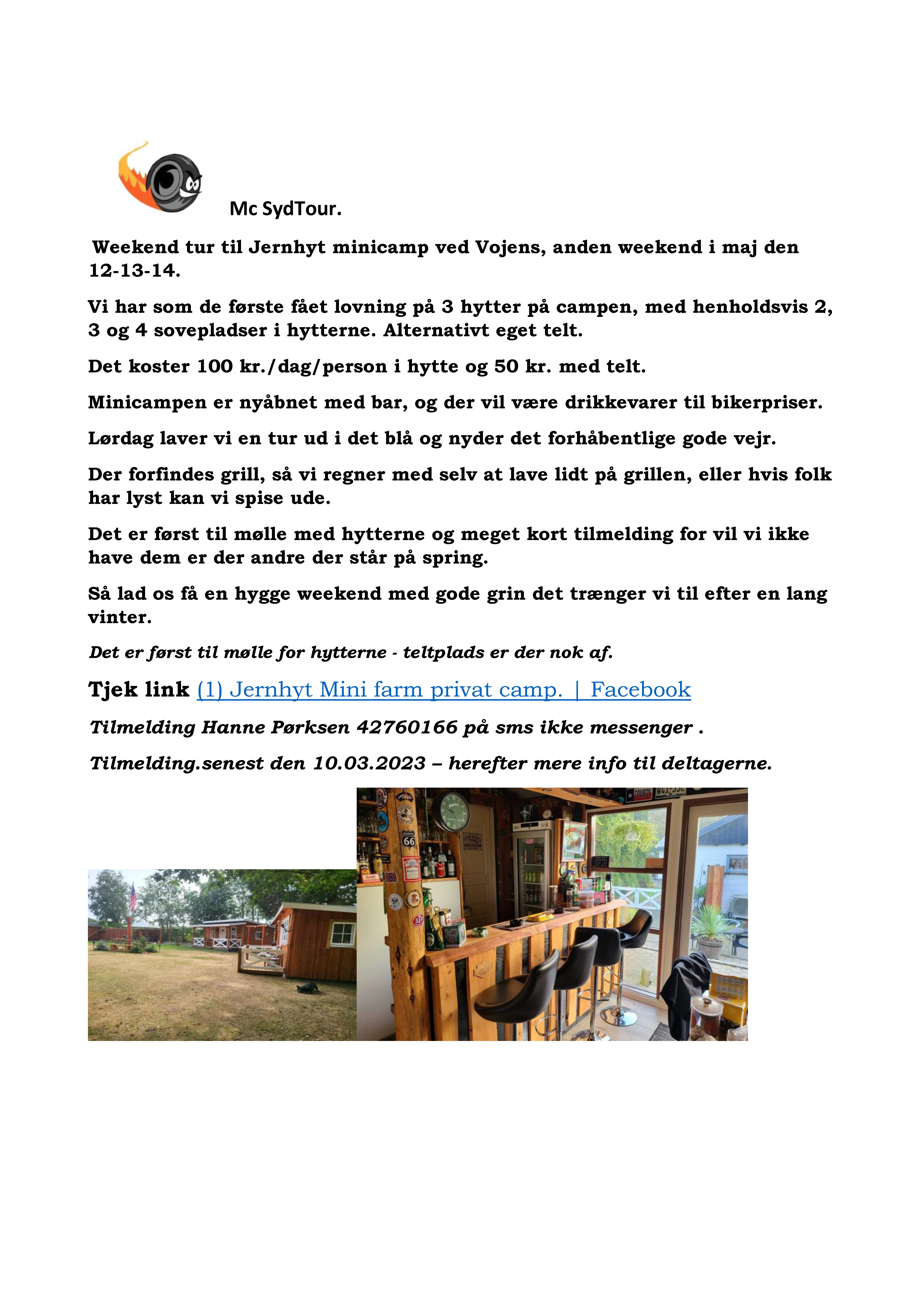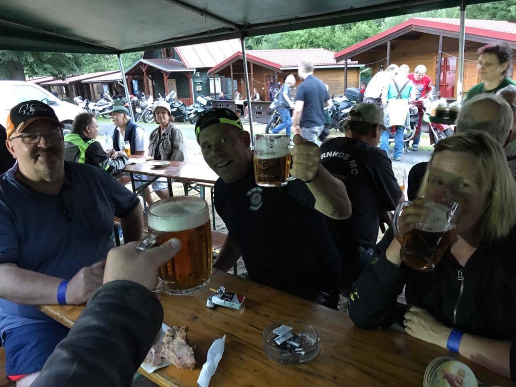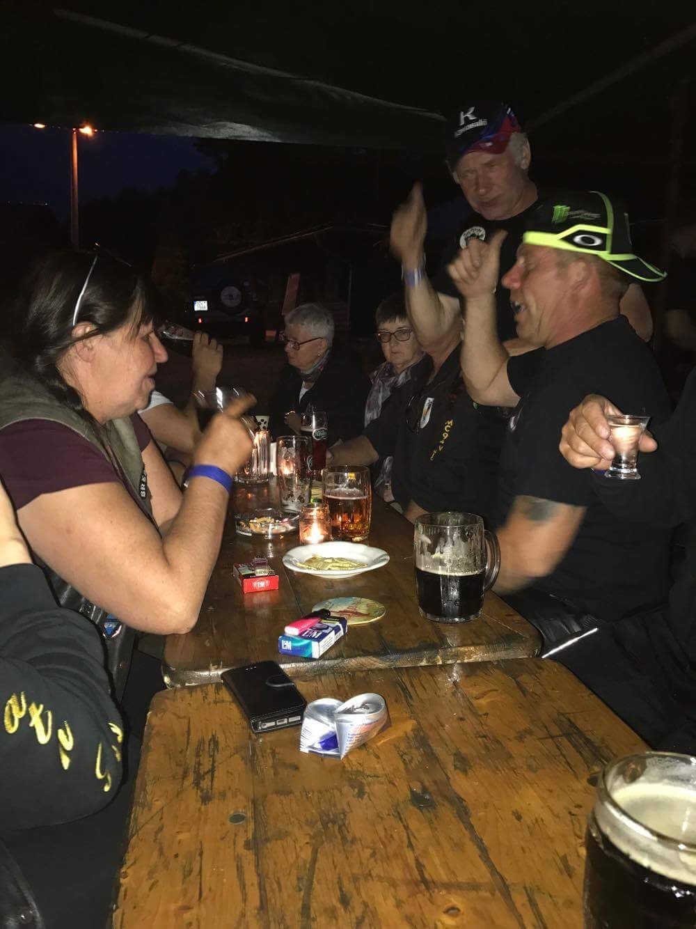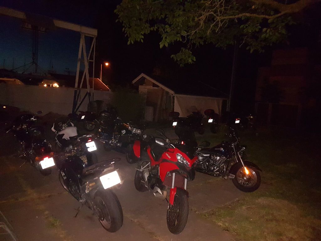 På turen overnatteder vi på MC-Campfyn og MC-Camp Sydhavsøerne . Vi dumpede ind i et lokalt mc-træf, blev inviteret og besøgte en mc-klub.