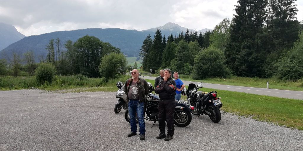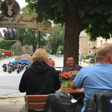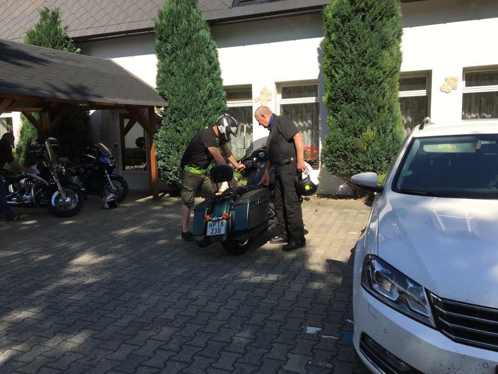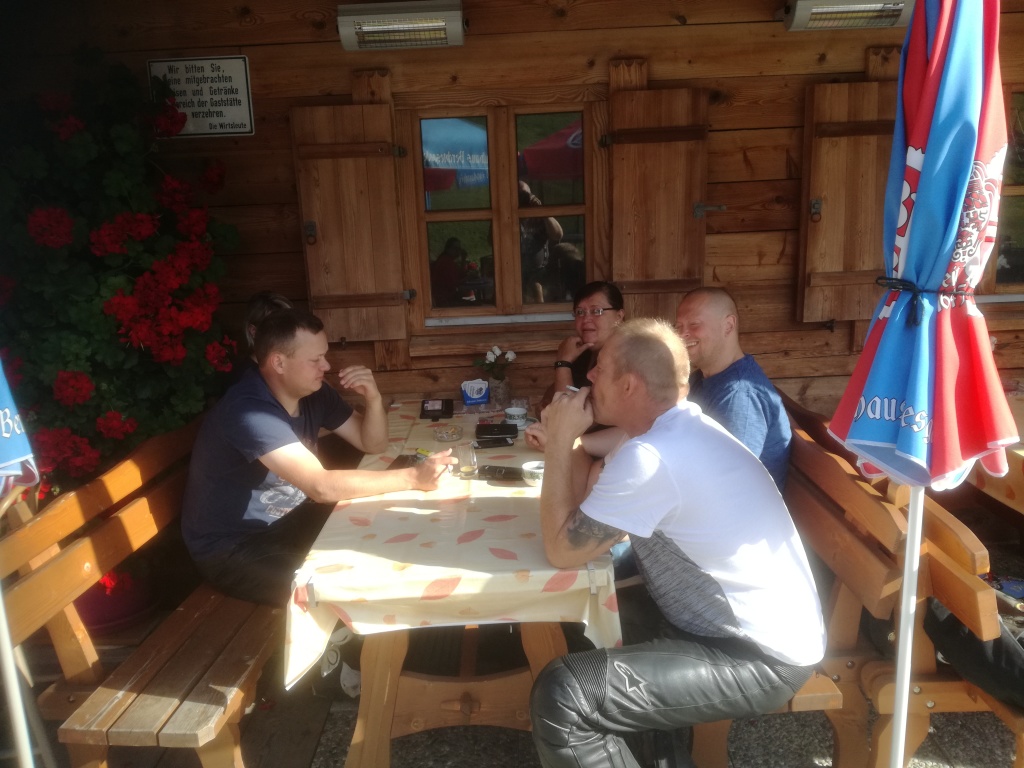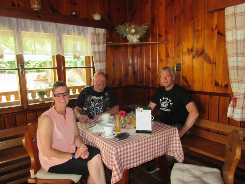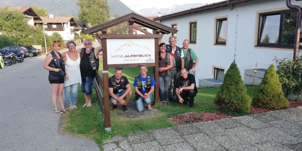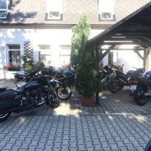 Vi var inkvarteret på Hotel Alpenblick Berghof. Et rigtigt fint hotel, hvor de selv kørte mc. Fruen i huset tilbød at tage os med på en rideout, så vi tog lige 200 km i Tyskland og Østrig bag efter en Harley.