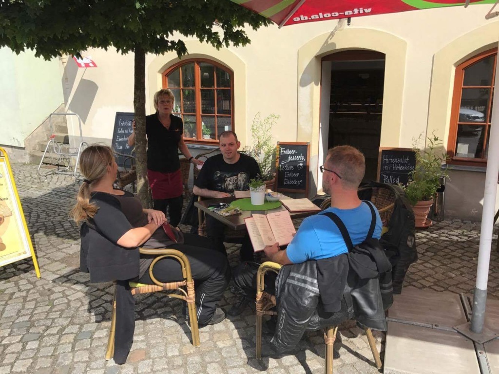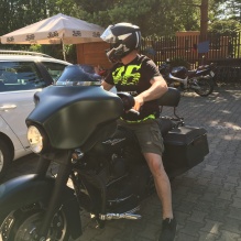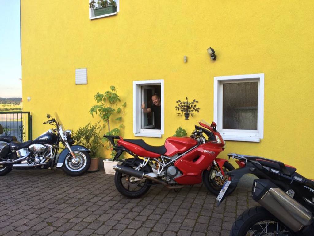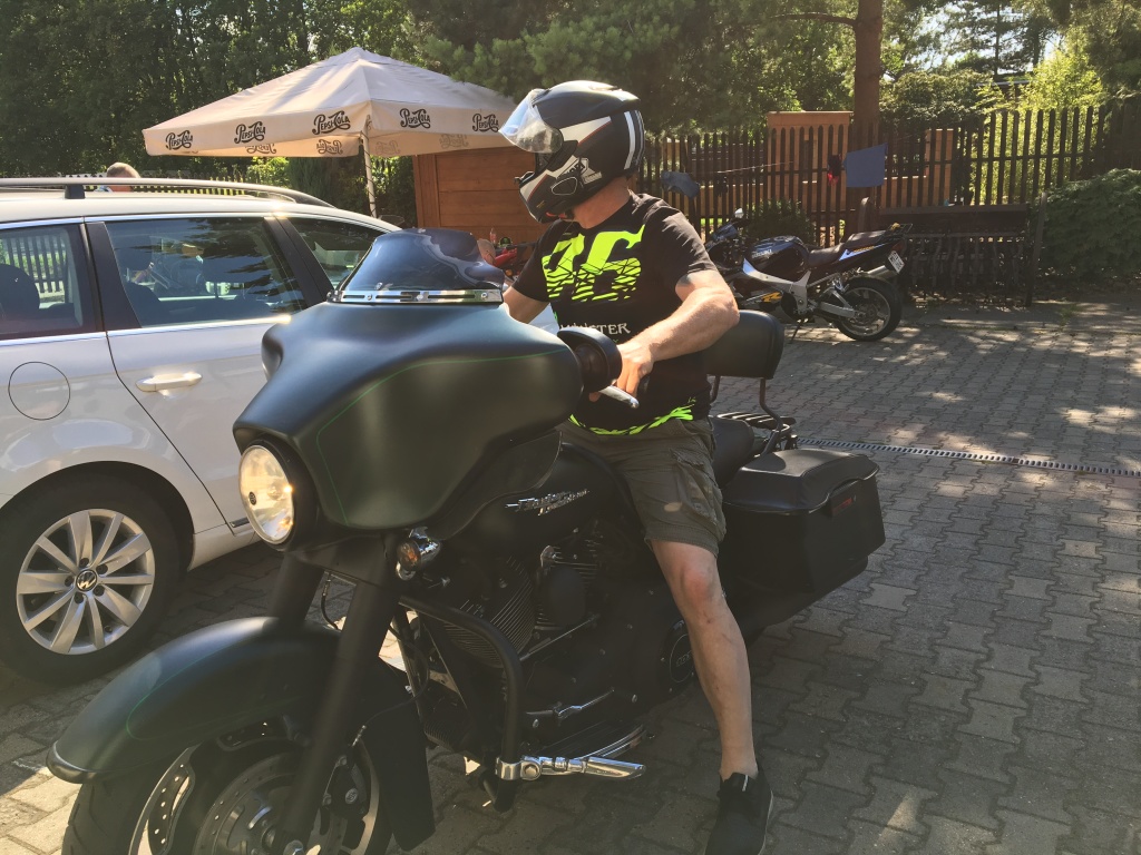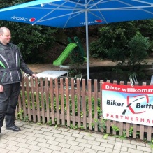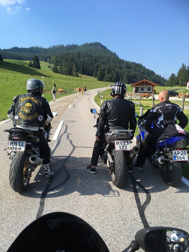 Vi var inkvarteret på Hotel Alpenblick Berghof. Et rigtigt fint hotel, hvor de selv kørte mc. Fruen i huset tilbød at tage os med på en rideout, så vi tog lige 200 km i Tyskland og Østrig bag efter en Harley.