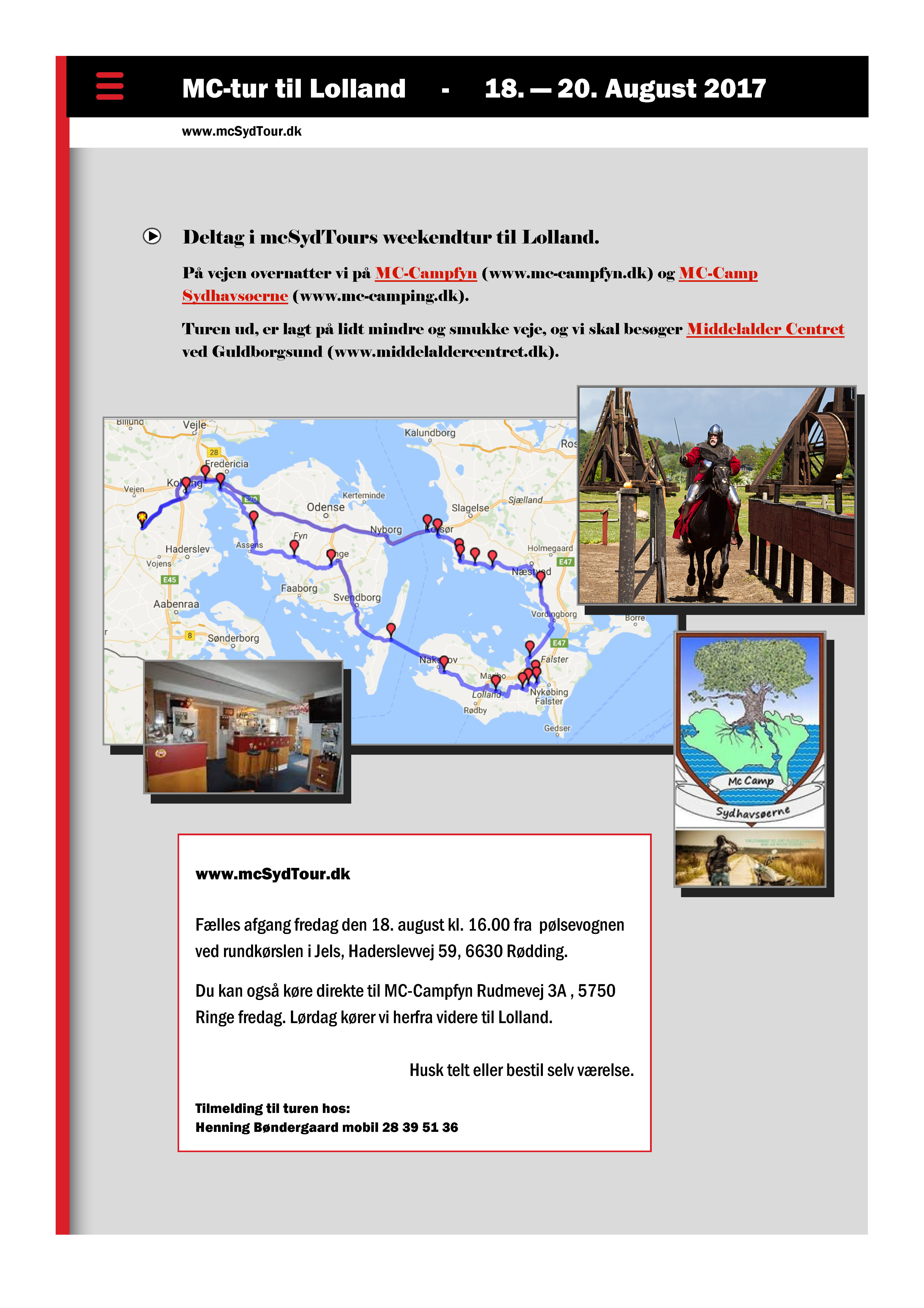 Weekendtur 18. til 20. august 2017 til Lolland.
