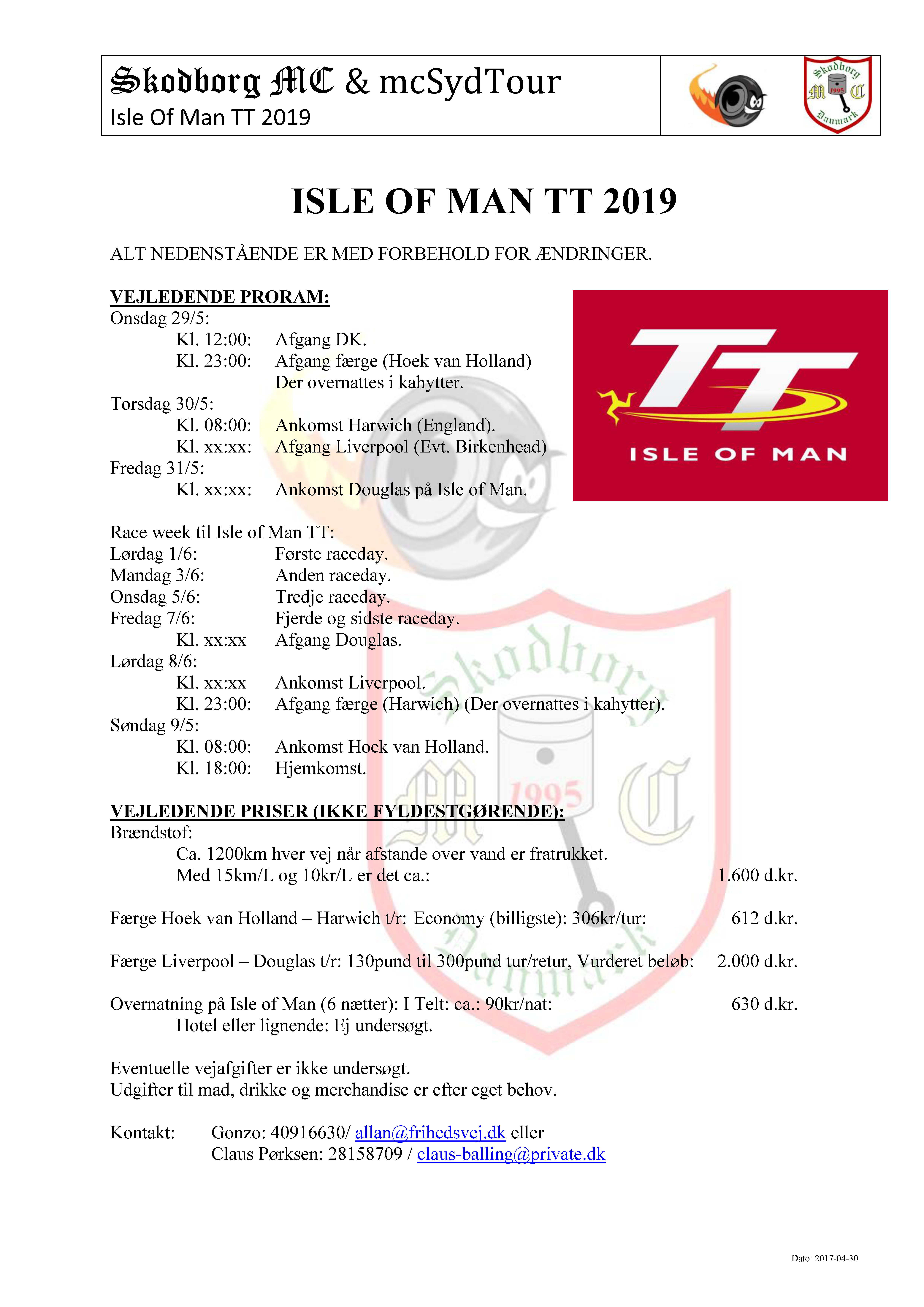 18 motorcykler/medlemmer tog afsted til verdens vildeste motorcykelløb på øen Isla of Man. De berømt-berygtede motorløb er blevet afholdt på øen i over 100 år.